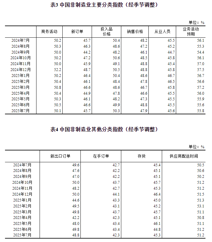 统计局解读:7月份制造业采购经理指数有所回落,非制造业商务活动指数保持扩张