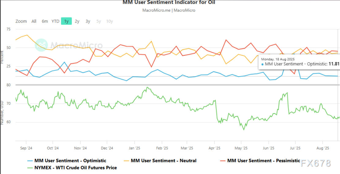 尽管地缘风险升温,但信心指标暂未对油价形成强力支撑。MM情绪指标显示,仅11.81%的投资者对未来三个月持乐观预期,43.06%维持中立,45.14%偏向悲观。这一数据反映出市场对冲突实际影响的不确定性,整体处于犹豫观望状态。